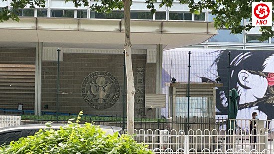 今年6月,美国驻华大使馆外。受访者供图