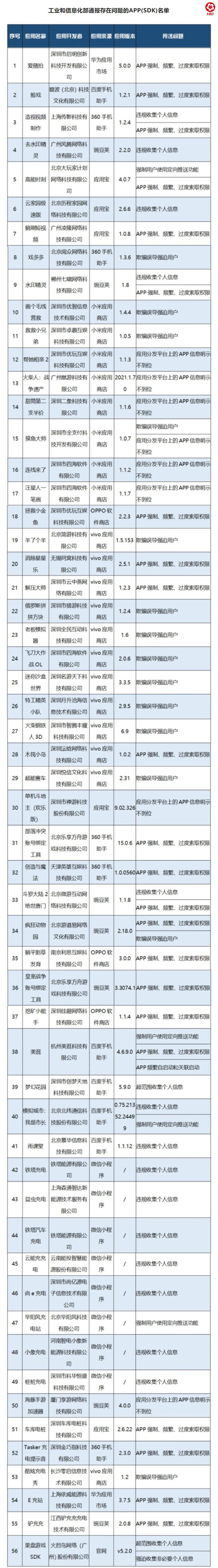 人民网北京5月8日电 (记者申佳平)据工业和信息化部官网消息,依据《个人信息保护法》《网络安全法》《电信条例》《电信和互联网用户个人信息保护规定》等法律法规,持续开展APP侵害用户权益专项整治行动。近期,工业和信息化部组织第三方检测机构对群众关注的实用工具、休闲娱乐及短视频等移动互联网应用程序(APP)及第三方软件开发工具包(SDK)进行检查。发现56款APP(SDK)存在侵害用户权益行为,其中“羊了个羊”等多款游戏APP在列。