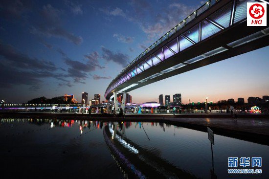 夜幕降临,山西省太原市汾河景区灯光璀璨、夜色迷人。