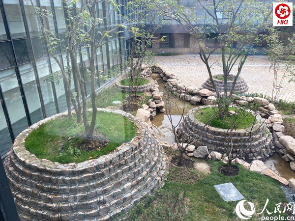 人民网北京9月23日电 (记者杜燕飞)初秋,记者一行走进延庆冬奥村,一座座依山而建的半开放中式庭院散落山林间;每一座庭院的天井中,就地取材的原生态石块砌筑成了树木的“安乐窝”;施工过程中开挖出来的碎石,直接用于建筑外墙的“石笼墙”装饰,与门廊的原木色门窗相呼应……