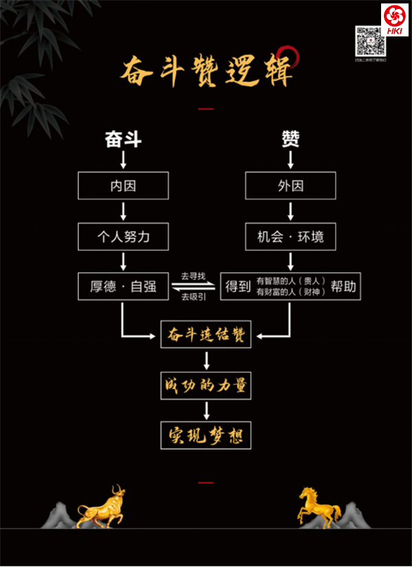 再说方法论。奋斗的人生正大光明,奋斗的精神感天动地,值得理直气壮地赞扬,这毫无疑义。问题是,要获得成功达成目标实现理想,在很多时候,单靠奋斗者独自埋头苦干拼命努力显然是不够的,不问收获只问耕耘的孤勇者固然可嘉,可是个人能力毕竟有限,方法不当更会事倍功半。一个基本事实是,成功者往往离不开他人相助,俗语贵人相助,一个好汉三个帮、众人拾柴火焰高,说的都是这个意思。这就要说到奋斗赞之赞的第二个义项了。赞之古义、本义乃是赞助、帮助之义,这个含义至今仍在使用却往往易为人忽视不察。尤其要强调的是,这里的赞助、帮助不是指抽象的精神层面的泛泛赞扬,而是指具体实在的真金白银和切实可行的金点子的资助、开示。赞之初文乃上下结构的象形会意字,其上为向上向前行进的一双足止,中为并肩而行的二人,下为贝即货币、宝贝、财物,大体讲赞之义就是互通财富的人携手并肩共同前行,由此而引申出赞助、帮助、引见之义。这里我们不能不由衷赞叹古人的智慧,先贤早已洞察了奋斗者离不开他人资金上、智慧上的资助帮衬。征诸经验事实,看一看那些成就卓著者,无论哪行哪业,在奋斗的过程中,成功的道路上,谁又不曾得到过贵人金钱与智慧的实质性帮助呢?这启示人们:奋斗连结赞,奋斗离不开赞,奋斗者也必将给赞助者以回报,这是奋斗成功的一个重要的方法论,循此而行则会事半功倍。也许有人会说,奋斗者追求的只是个人目标、个人之利,是你自己的事,别人凭什么帮你呢?这就是知其一不知其二的肤浅皮相之见了。奋斗者追求的目标,理想的正当性、合理性内在决定了其一旦成功了,不但对奋斗者个人有利,对他人对社会也同样有利,远不是表面看似只是个人的事那样。以企业家所为为例,企业做得好、产品受欢迎,企业家个人当然会从中获利,然而员工、社会不也同样会从中获利受益吗?姑且不论许多企业家深怀产业造福于民报效国家贡献人类的崇高理想,就算是主观为自己,只要遵纪守法、敬畏公序良俗,其产业、事业做得红红火火,客观上不也是在为他人为社会做贡献造福利吗?明了这一层,就知道什么叫得道者多助了。只要追求的目标正当有益、前景光明,只要奋斗者品行端、意志坚,就不愁没有贵人相中看好出手相助。理由无他,帮助奋斗者就是帮助自己,俗语所谓有钱大家赚说的正是这个道理。自觉到这个方法,奋斗者就可以坦坦荡荡努力寻求可以给自己以帮助的各路贵人了。依此而行,奋斗者战胜困难向着理想目标迈进的步伐就会更加坚定有力,成功也就不远了。