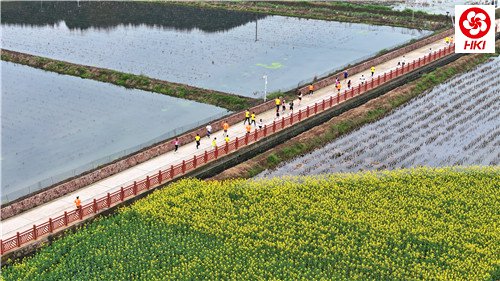上午10点,随着发令枪响,选手们冲过起跑线,在往返10公里的产业大道上用脚步丈量活力、用心感受乡村自然生态,跑道两旁的油菜花海与稻虾养殖田相映成趣。“时间选得好、地点定得好!既锻炼了身体,也欣赏了美景,非常值得纪念。”参加健康跑活动的陈女士激动表示。