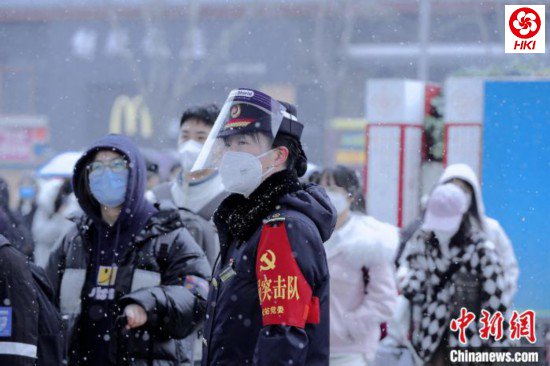 图为西安火车站工作人员在站外执勤。 贾智炜 摄