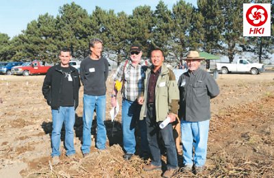 王舰(右二)与外国专家在美国考察育种项目。 |
