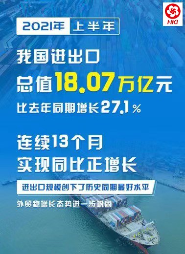 上半年,我国进出口规模创下历史同期最好水平:货物进出口总额180651亿元,同比增长27.1%,连续13个月实现同比正增长,与2019年同期相比也增长了22.8%。数据显示,机电产品出口、一般贸易进出口、民营企业进出口比重持续提升。