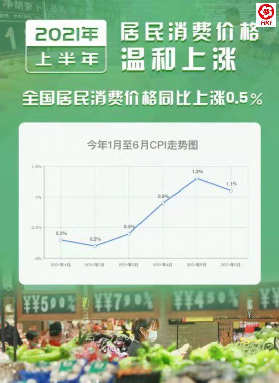 与持续高涨的大宗商品价格相比,上半年,全国居民消费价格指数(CPI)同比温和上涨0.5%。其中,6月份CPI同比上涨1.1%,涨幅比5月份回落0.2个百分点。