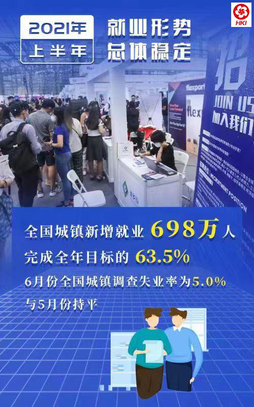 稳住就业就是稳住大局。数据显示,上半年全国城镇新增就业698万人,完成全年目标的63.5%。6月份全国城镇调查失业率为5.0%,与5月份持平,比上年同期下降0.7个百分点。31个大城市城镇调查失业率为5.2%,与5月份持平。