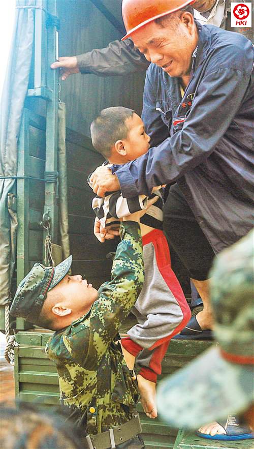 ▲7月20日,武警第一机动总队某支队官兵在河南登封转移受灾群众。