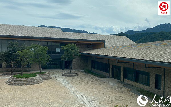 人民网北京9月23日电 (记者杜燕飞)初秋,记者一行走进延庆冬奥村,一座座依山而建的半开放中式庭院散落山林间;每一座庭院的天井中,就地取材的原生态石块砌筑成了树木的“安乐窝”;施工过程中开挖出来的碎石,直接用于建筑外墙的“石笼墙”装饰,与门廊的原木色门窗相呼应……