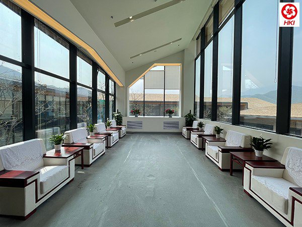 同时,冬奥村还采用了被动房外窗,传热系数更小,隔热性能更好,和一般的外窗相比,更加节能。门窗系统、玻璃幕墙系统均采用了断热桥设计,针对特殊节点进行优化,幕墙的连接点均采用了仿生木进行断桥处理,可以降低室内外的冷热传导,实现降低能耗的功能。