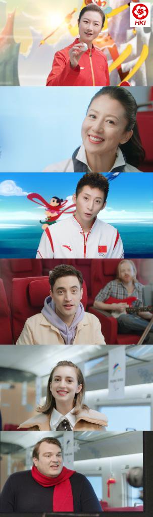 中国冬奥首金得主杨扬和夏奥冠军丁宁、林跃领衔英文MV,与中外网红、冰雪运动小将、新华社记者共同演唱。