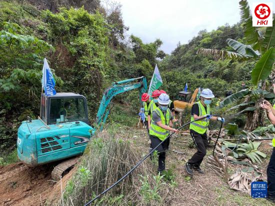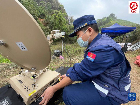3月22日,工作人员在东航MU5735客机坠毁事故救援现场架设通信设备(手机照片)。新华社记者 周华 摄