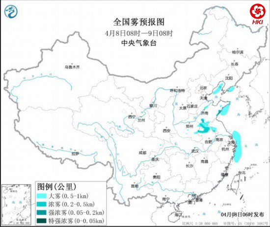 中新网4月8日电 据中央气象台网站消息,预计,4月8日白天至夜间,渤海北部海域、辽东半岛东部沿岸海域、山东半岛南部沿岸海域、江苏南部沿岸海域、长江口附近海域、浙江东部沿岸海域将有能见度不足1公里的大雾天气。此外,8日早晨至上午,安徽北部、山东半岛南部等地的部分地区有大雾天气。中央气象台8日6时继续发布大雾黄色预警。8日至10日,西南地区多阴雨,西藏东南部、云南西北部和东部、贵州西部等地有中到大雨。