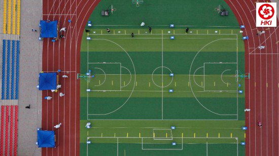 5月10日,在青海省西宁市城西区文汇小学核酸采样点,市民在排队进行核酸采样(无人机照片)。(新华社记者 张龙 摄)