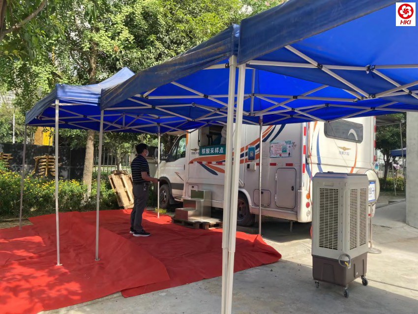 7月30日,杨冀将房车开到成都龙泉驿区西河镇公立卫生院,刘红军院长立即组织工作人员到采样点,迅速将车辆改造成了“移动采样车”,并在采样车外搭建帐篷和冷风机,解决群众防暑等问题。
