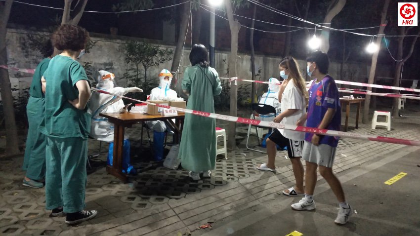 室外,是近40度的高温。穿着密不透风的防护服,全副武装的工作人员紧张有序地工作,等候的居民自觉排起整齐的长队。