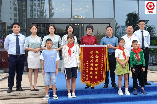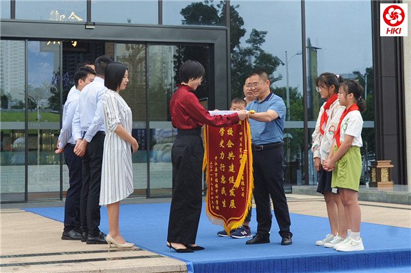 (本台讯:香港国际卫视记者 刘燊 肖开丰 杨杰)8月29日,四川业宽建筑工程有限公司党支部书记胡兰,从中江县万福镇中心校校长顾云和该校蒋雨嫣等三名同学手中接过一面绣有:“校企共建促发展 学史力行惠民生”的锦旗时,现场围观的群众响起阵阵掌声,一致表示“企业有爱心、教育有希望”。