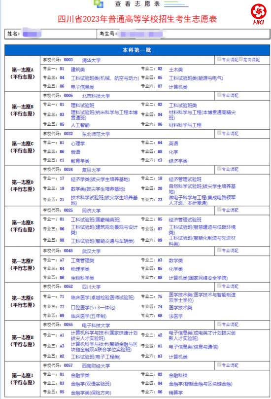 注:如考生不在国家专项、地方专项、高校帮扶、公费师范生、地方优师专项、乡村振兴名单中,则对应志愿栏将不显示。