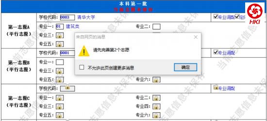 填写志愿时应该避免出现填写信息不完整的情况,如在某个批次中,没有填写一志愿却填写了二志愿;填报了某个院校,却没有填写具体的专业。在很多情况下,系统会进行警示,考生应根据系统的警示修改好自己的志愿。