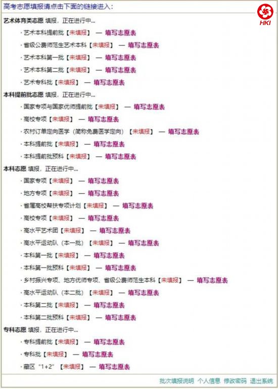 考生可进行的操作有三种,填写志愿,修改志愿和查看志愿。