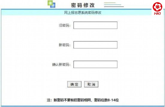 考生登录网上填报志愿系统,在登录成功所进入的功能选择页面中点击页面右下方的 “修改密码”即可进入密码修改页面。网上填报志愿系统密码修改页面如下图: