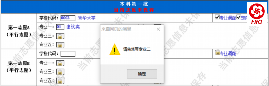 图1-4 在没有填完上一志愿的情况下填写下一志愿