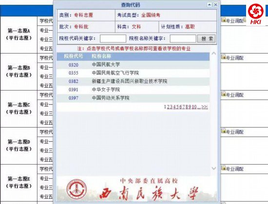 点击页面中的“查询计划”按钮,将会弹出查询计划控件,考生可在此控件内查找筛选出本批次能够填写的志愿,如下图: