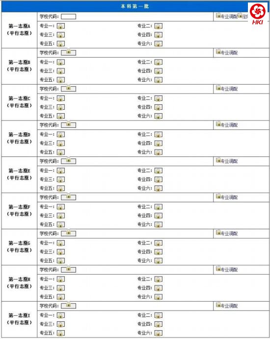 在志愿类别选择页面点击“填写志愿表”或“修改志愿表”即进入该页面,如下图所示: