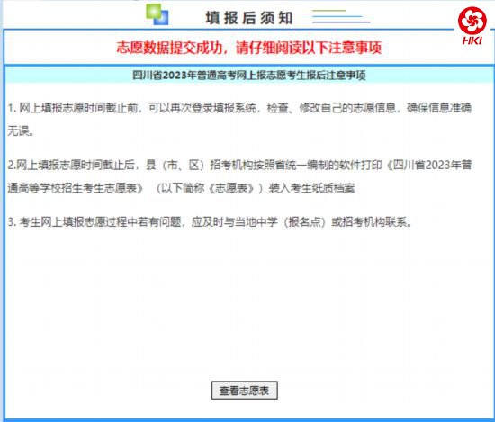 阅读完考生填报须知后,考生可点击页面下方的[查看志愿表]按钮,可以查看考生刚刚填写的志愿表信息,进行检查核对。