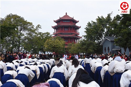 (本台讯:香港国际卫视 刘辉 通讯员 梁潼 张力)正月初九一大早,来自中江中学的200名高三学子身着宋制汉服在魁山公园南广场上整齐列队,等待着一场属于他们的充满意义的仪式。9时9分,“吉时到”提示声出,中江县第二届“状元魁·登高会”拉开帷幕。