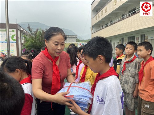 永丰乡中心学校是中江县最南端的一所乡村学校,该校大多数学生都是留守儿童。由于条件有限,孩子们无法拥有统一的校服,也没有多余的经费购买矿泉水。5月29日,刘春香和九三学社、德阳市慈善联合会、德阳团委、德阳市青年企业家协会的代表们,带着沉甸甸的爱与温暖走进学校,为孩子们送上惊喜。“本次活动为学校筹集到了772套校服和120本书籍,并且爱心企业将每年为学校免费提供5000桶矿泉水。”刘春香介绍。