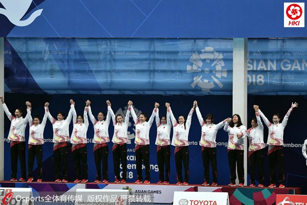 2018年雅加达亚运会,中国女子水球队获得冠军。(资料图片)图片来源:Osports