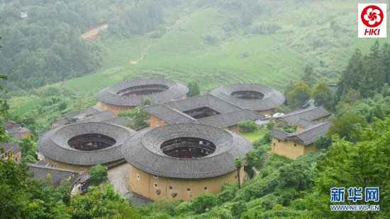 这是雨中的田螺坑土楼群(8月6日摄)。新华社记者 周义 摄