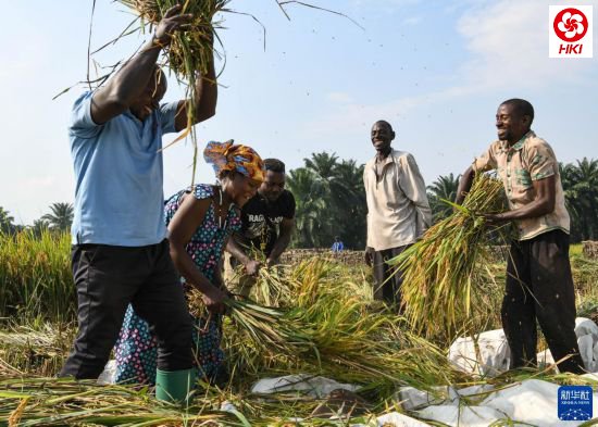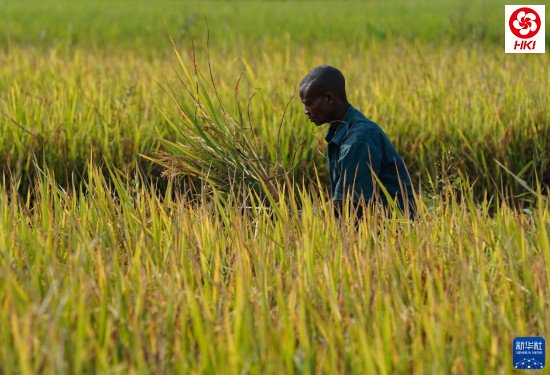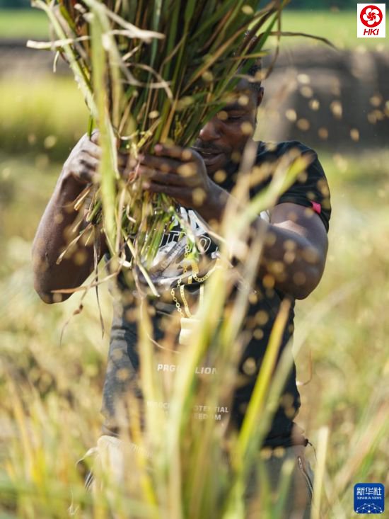 6月20日,在布隆迪布班扎省基航加县,农民在田间收获杂交水稻。