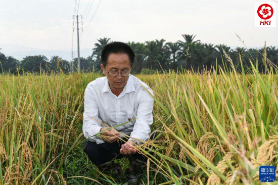 6月20日,在布隆迪布班扎省基航加县,中国援布农业专家组组长杨华德在田间查看杂交水稻(右)和当地水稻。