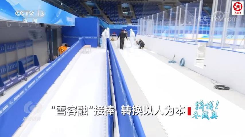 不仅是冰面,针对运动员需要全程乘坐冰橇,在从更衣室到比赛场地的通道上这些运动员活动的地方,还专门加铺了300平方米的仿冰板,方便坐着冰橇的运动员自由进出。针对坐在冰橇上视线也更低,运动员等候区的板墙也更换成了透明板墙。