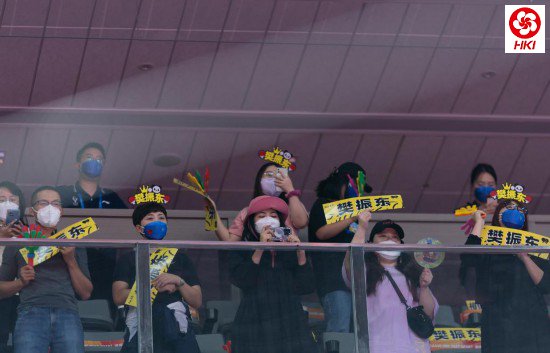 10月8日,现场观众为中国队选手樊振东加油助威。新华社记者 江宏景 摄