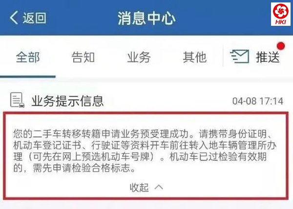 需要提示的是,对未通过网上申请直接到转入地车辆管理所申请二手车跨辖区转移登记的,车辆管理所将预受理业务,并查验机动车,待电子化机动车档案转递后,再审核办理,重新核发的机动车牌证将通过邮寄或自取方式交现机动车所有人。