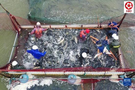 9月25日,工人在泗洪县天岗湖“渔光互补”产业基地捕鱼(无人机照片)。