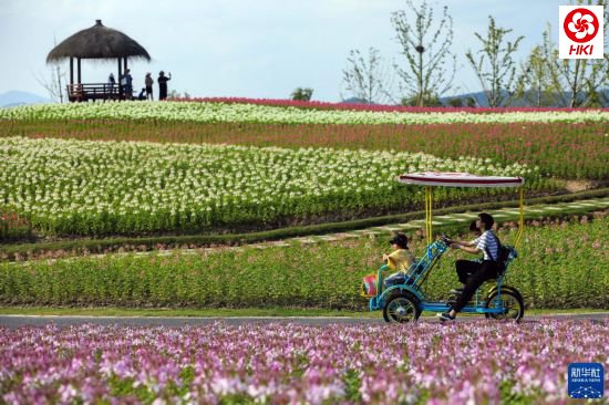 当日,不少游客来到浙江省杭州市余杭区径山镇大径山乡村国家公园,游览花海,乐享假期。
