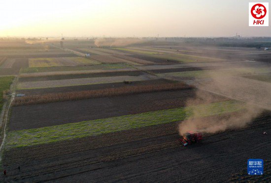 当日,河南省宝丰县迎来晴好天气,当地农民抓紧时间抢收作物保收成。