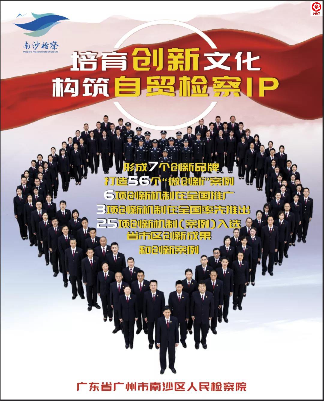 该院在创新文化激励下打造涵盖各个检察工作领域、成系统、成体系的创新品牌集成, “全领域创新型自贸检察IP”是南沙检察文化特色的鲜明符号,具有明显的辨识力、影响力、传播力。