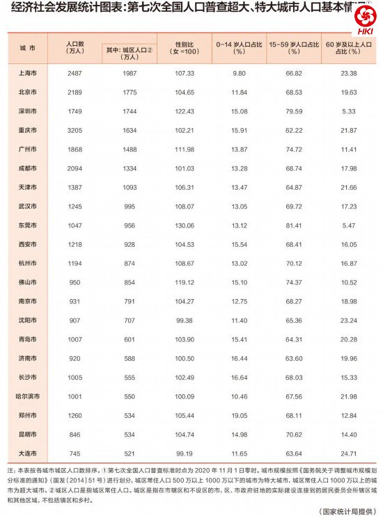 根据国家统计局说明,城区常住人口1000万以上的城市为超大城市,城区常住人口500万以上1000万以下的城市为特大城市。表格中的城区人口指城区常住人口。城区是指在市辖区和不设区的市,区、市政府驻地的实际建设连接到的居民委员会所辖区域和其他区域,不包括镇区和乡村。