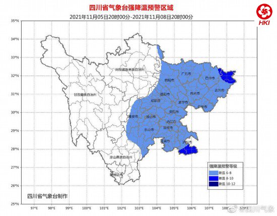 原标题:今年入秋以来首个,四川省气象台发布寒潮预警