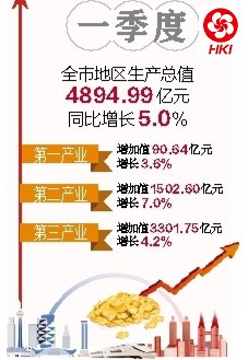 记者昨日从成都市统计局、国家统计局成都调查队获悉,根据四川市(州)地区生产总值统一核算结果,一季度,全市实现地区生产总值4894.99亿元,同比增长5.0%。分产业看,第一产业增加值90.64亿元,增长3.6%;第二产业增加值1502.60亿元,增长7.0%;第三产业增加值3301.75亿元,增长4.2%。一季度,全市经济延续恢复态势,开局平稳。